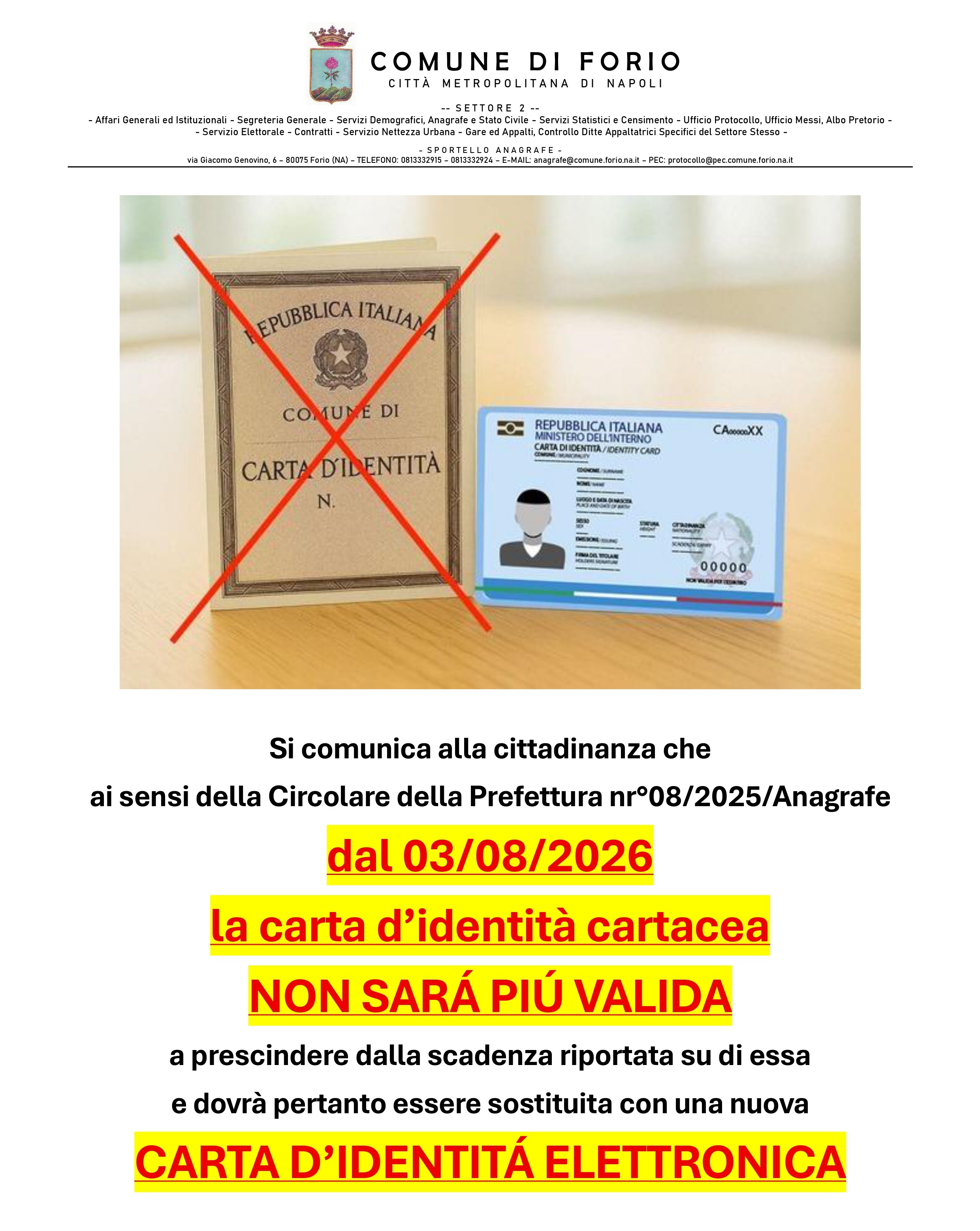 ai sensi della Circolare della Prefettura nr°08/2025/Anagrafe