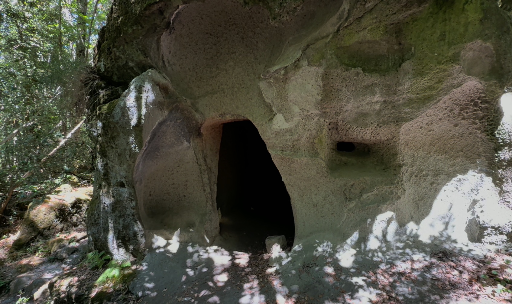 Tra gli elementi più caratteristici della Falanga ci sono le case scavate nei grandi massi di tufo precipitati dall’Epomeo. Alcune di queste strutture rupestri sono arrivate fino a noi in condizioni straordinariamente buone: all’interno sono ancora visibili nicchie, ganci in pietra, piccole aree destinate al focolare e spazi adibiti al ricovero di animali e attrezzi. L’opera dell’uomo si fonde con quella della natura: il tempo, gli agenti atmosferici e l’erosione hanno modellato l’esterno dei blocchi tufacei creando forme plastiche, rientranze e superfici scolpite che conferiscono alle rocce un aspetto quasi artistico. All’ingresso di molte di queste cavità era consuetudine dipingere grandi croci bianche di calce, utilizzate sia come simbolo devozionale sia come deterrente per gli animali selvatici.