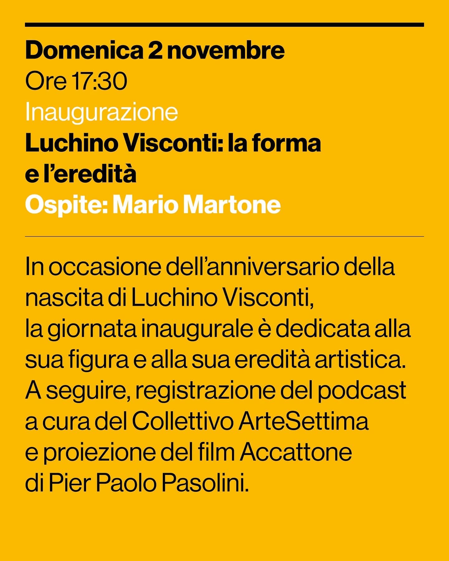Nel giorno del comune anniversario del 2 novembre, Quadro – Oltre l’occhio la realtà dedica una settimana di proiezioni, incontri e riflessioni a Luchino Visconti e Pier Paolo Pasolini, due autori che hanno trasformato il cinema in una forma di pensiero.
