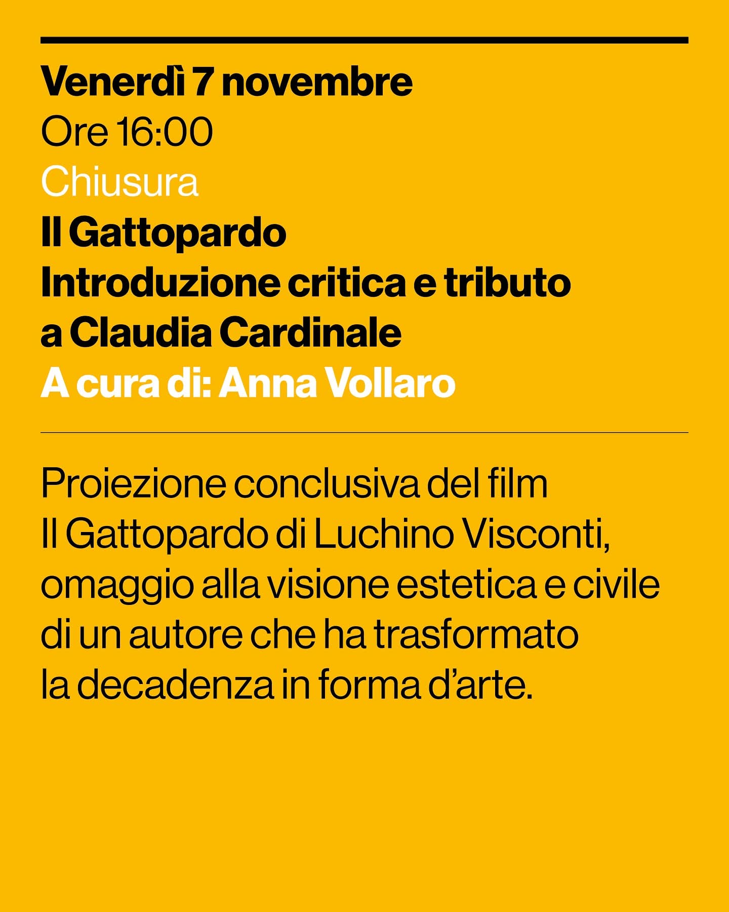 Proiezione conclusiva del film Il Gattopardo di Luchino Visconti, omaggio alla visione estetica e civile di un autore che ha trasformato la decadenza in forma d’arte.