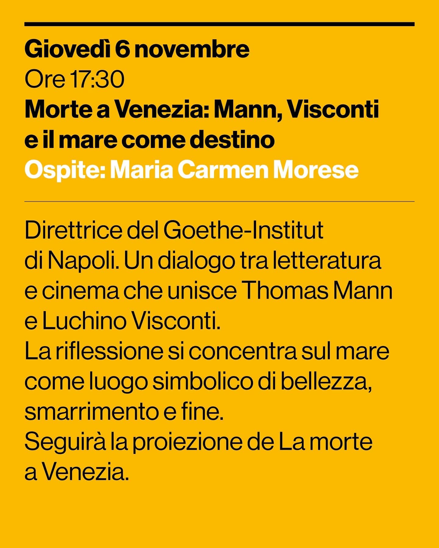 La riflessione si concentra sul rapporto tra l’autore tedesco, il regista e il mare come luogo simbolico di bellezza, smarrimento e fine.