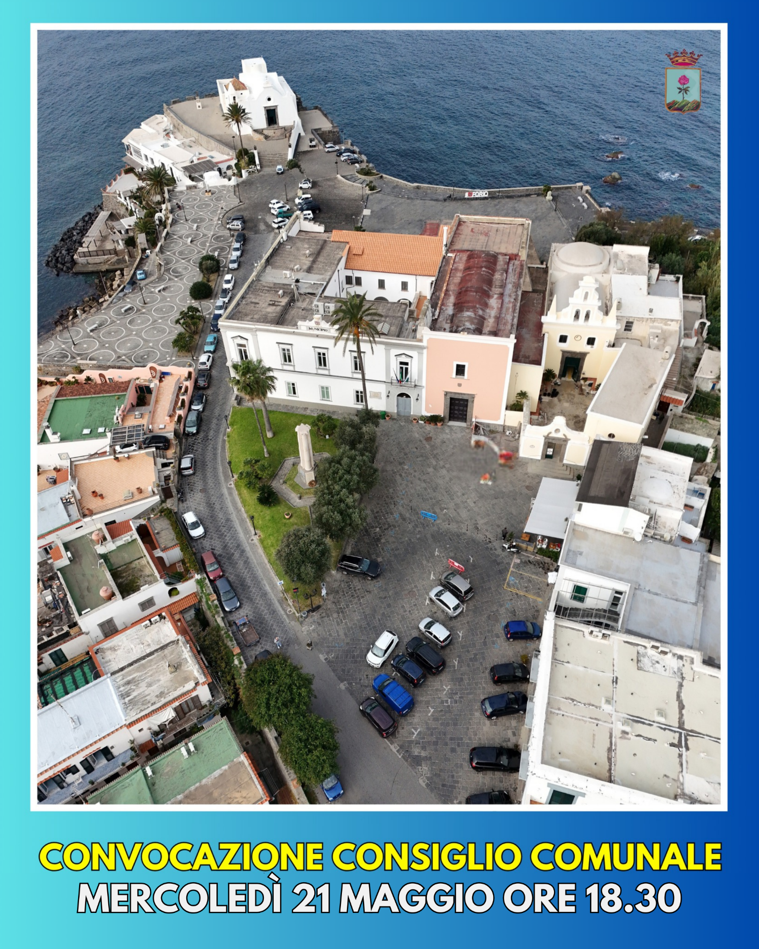 Si comunica alla cittadinanza che è convocato il Consiglio Comunale, in sessione straordinaria ed in seduta pubblica, per il giorno 21 MAGGIO 2025 alle ore 18:30, presso la sede comunale di Piazza Municipio n.9, sala consiliare "Avv. V. Mazzella”.