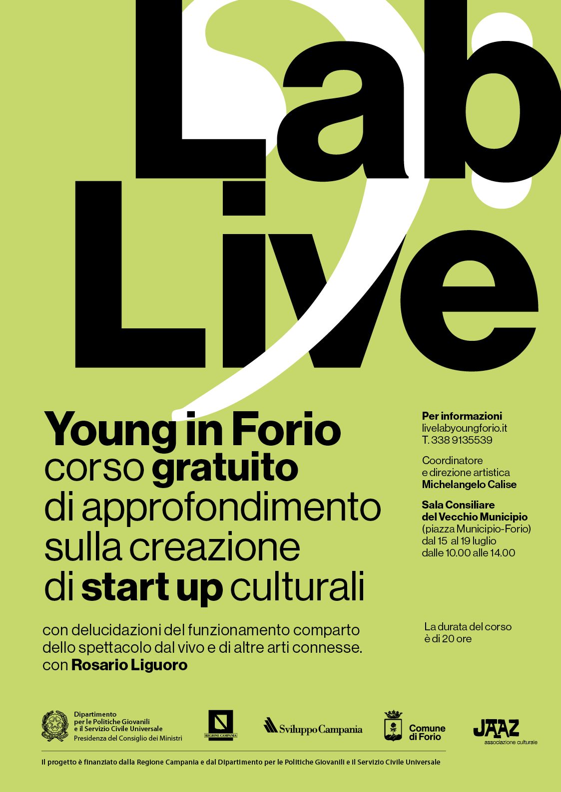 "Lab Live Young", un corso gratuito di approfondimento dedicato alla creazione di start-up culturali e all’esplorazione del funzionamento del comparto dello spettacolo dal vivo e delle arti connesse, al 15 al 19 luglio 2025, presso la Sala Consiliare del Vecchio Municipio di Forio,